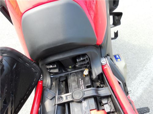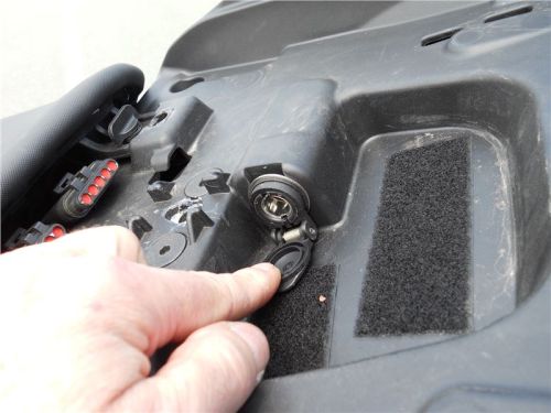 Na palubní desce a pod sedadlem je po jednom kuse 12V DIN zásuvky a pod sedadlem nacházím i základní nářadí s první pomoci při defektu.