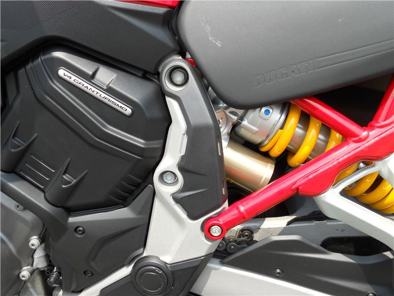Nová rodina Ducati motorů V4 je skutečnou revolucí, protože nemá tolik s Ducati spojené desmo, a pak samozřejmě je to čtyřválec. Konvenční technika dovoluje ventilový servis každých 60 000 kilometrů, čímž se motor V4 Granturismo alespoň v tomto ohledu jeví proti dřívějšímu dvouválci servisně méně náročný.