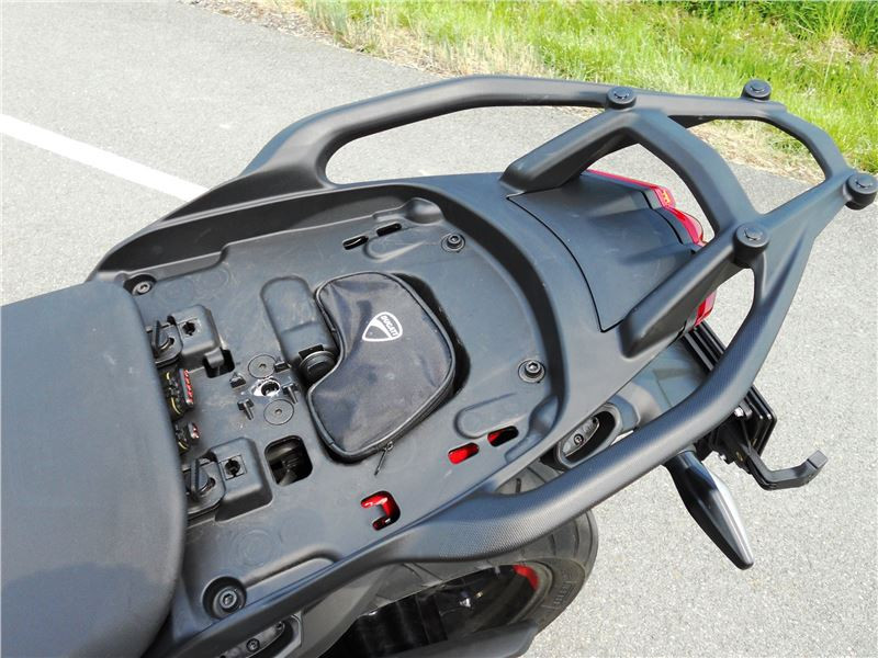 Je tu mnoho různých detailů, příprava pro originální kufry, támhle oblouček, tady ostrá hrana. Je to Ducati design se vším všudy – účel a umění.