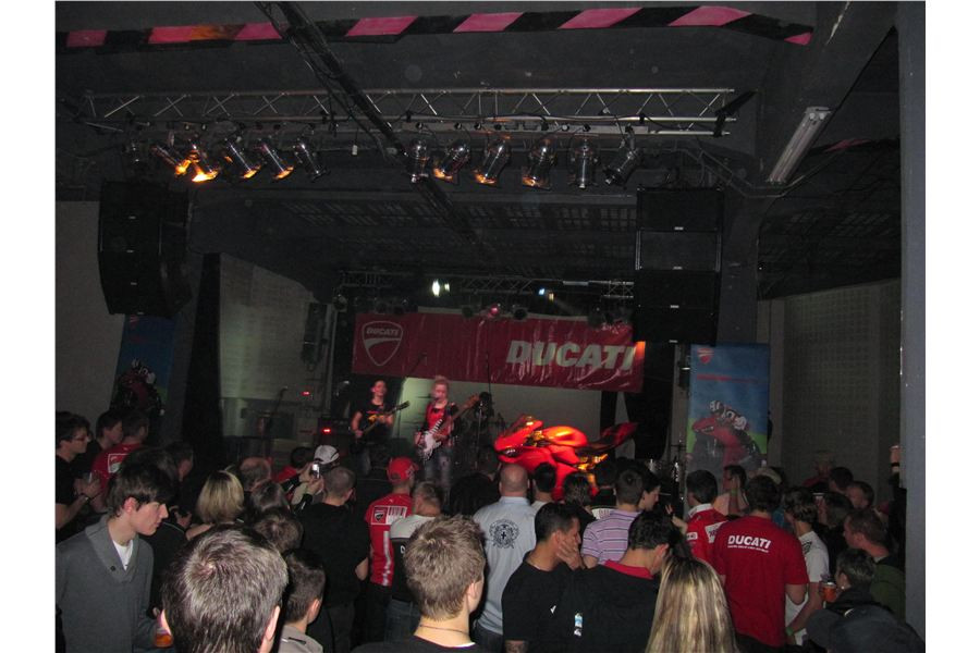 Celý večer byl v režii firmy MOTO ITALIA s.r.o. V prostorách klubu mohli fandové italských strojů vidět a obdivovat Ducati Diavel a také Mercedes SLS. Této velkolepé událostí se zúčastnil všem známý motocyklový jezdec a kaskadér Mirek Lisý, který ukázal, že svůj stroj ovládá i na malém prostoru. Pro všechny bylo připraveno malé občerstvení v podobě piva a panini zdarma. K poslechu hrála dívčí kapela K2, která to pořádně rozjela.