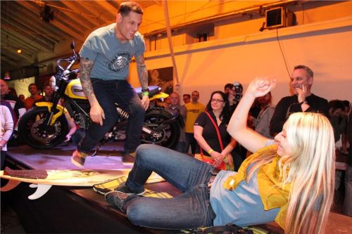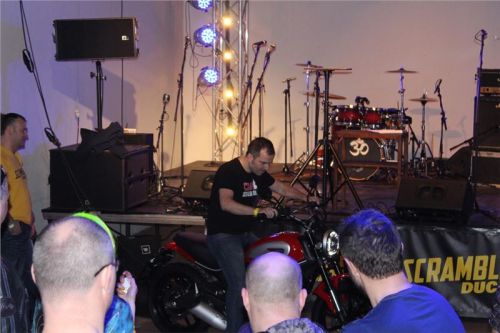 Součásti jejich vystoupení bylo také odhalení Ducati Scramblera, který byl od počátku večera mezi námi, ale stále zahalen. Jeden Scrambler Icon byl na pódiu a na druhém se střídali všichni, kteří se chtěli s ikonou vyfotit a zúčastnit se tak fotosoutěže. Oba kousky byly dlouhou dobu středem zájmu, všichni nad nimi diskutovali a lačně si je prohlíželi.