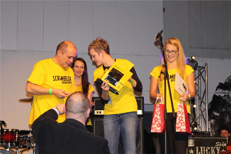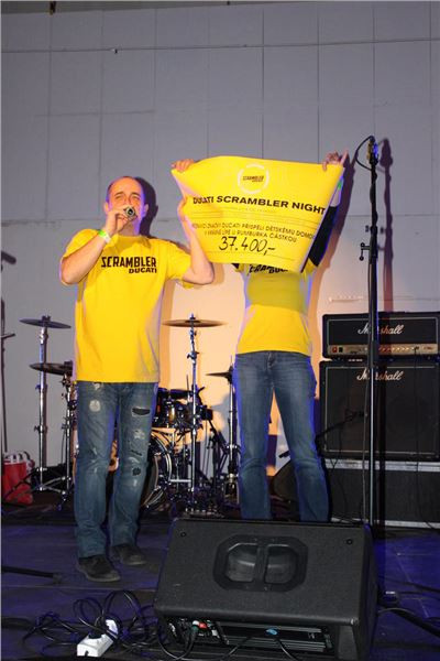 Dovozce Ducati, firma Moto Italia, již delší dobu podporuje Dětský domov v Krásné Lípě u Rumburka. V průběhu večera proto mezi námi chodily hostesky s lístky do tomboly. Ceny byly lákavé a nakonec se povedlo na Dětský domov vybrat necelých 38 tisíc.