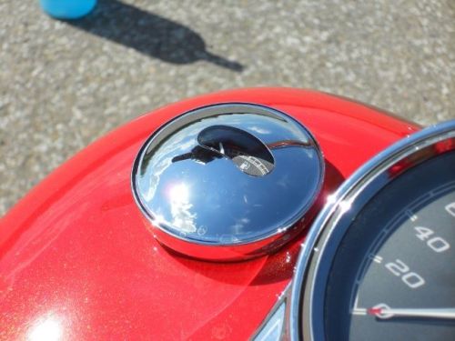 Malinký LCD displej, nijak nerušící ručičkový rychloměr, ukazuje krom standardních funkcí také otáčkoměr. Jedním tlačítkem proklikáte celé menu. Nenápadně schované kontrolky informují o všem, co je potřeba vědět. Pěkné. "A strejdo, to má dvě nádrže?" V levém "falešném" víčku je ukazatel množství paliva.