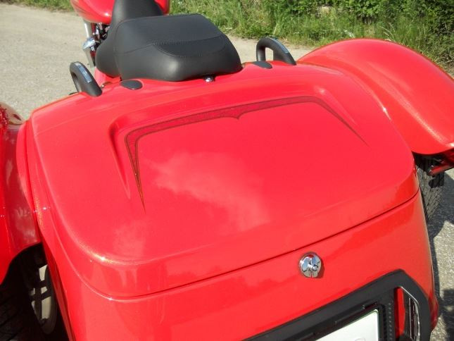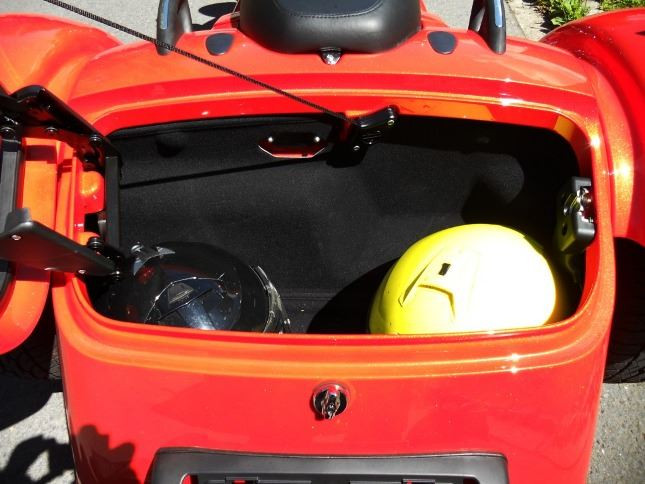 Pro cestování je skvělý objemný zamykatelný zavazadelník, kam se vejdou dvě integrální přilby a dvě kožené bundy, nebo stejné množství vybavení na dovolenou a na zadní víko lze dokoupit pěkný nosič, čímž se množství zbytečností ještě navýší :-)