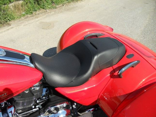 Řidičovo sedadlo je ve výšce 700 mm, tedy o soukání se do sedla nemůže být řeč. Spolujezdcovo místo k sezení je výš, vypadá užší, než u jednostopých touring modelů, ale je to optický klam s ohledem na mohutnost karoserie. Připomíná dvojsedlo z modelu Road Glide a dvě obrovská madla naznačují, že asi bude nutné se vzadu dobře držet.