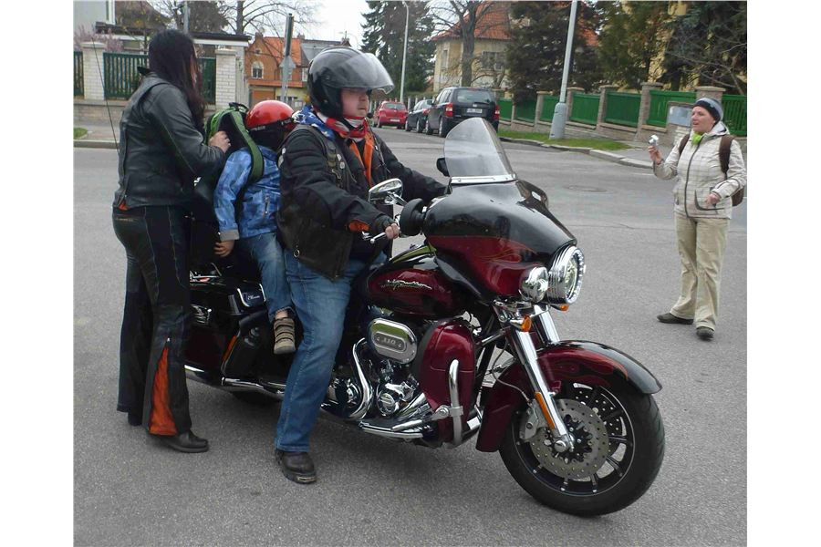 Motorkáři na Praze 6 vozili děti s autismem na pražské Ladronce v sobotu 31. 3. 2012. Děti obdivovaly krásu motocyklů Harley Davidson a rády se svezly i v sajdkáře. Cestovní koráb Harley Davidson Electra Glide učaroval Filípkovi, který by se rád svezl i na delší cestu.