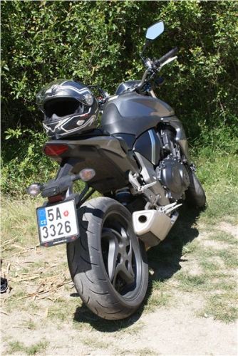 Pokud si nejdříve přečtete parametry (125 koní, 99 Nm, obojí při relativně nízkých otáčkách), očekáváte divokou bestii. Ale není tomu tak, CB 1000R je překvapivě hodná motorka. Ne že by byla slabá, to ne, zátah je citelný, motor táhne ve všech režimech, není nutné moc řadit a výborně se na ní předjíždí, ale čekal jsem prostě něco zuřivějšího. Pro vyznavače adrenalinu možná špatná zpráva, ale z hlediska praktického použití a cestování dobrá. Zkrátka, výkon se dá velmi dobře dávkovat a nemáte nikdy pocit, že by šlo o nějak „přemotorovaný“ stroj. Totéž se týká ovládání, motorka jede sama přesně tam, kam chcete, není nutné ji k ničemu přemlouvat. O brzdách netřeba mluvit, fungují výborně a můžete je za příplatek mít včetně ABS.