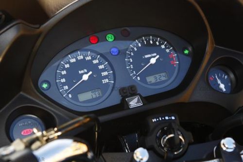 Další vychytávka, která na starším modelu nebyla, je ukazatel stavu paliva, nahrazující dřívější teploměr. Není zde sice kontrolka a je tedy nutno si hlídat hranici okolo červeného čtverečku, jenž značí rezervu, ale na druhou stranu máte o litr větší palivovou nádrž, která má objem 20 litrů. Se spotřebou do pěti litrů na sto kilometrů je tedy CBF600S zárukou neobvykle velkého dojezdu.