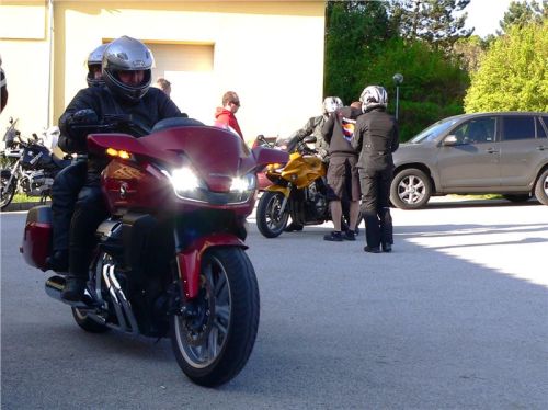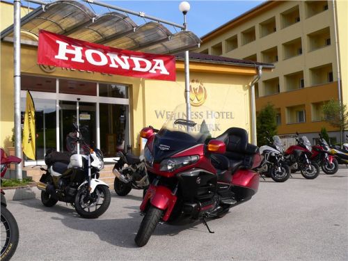 Ve čtvrtek odpoledne nás čekal velmi pestrý program. Mnoho zájemců netrpělivě očekávalo předváděcí zkušební jízdy na testovacích motocyklech Honda. Asi největší zájem byl o modely "adventure", a to Crosstourer DCT a Crossrunner, ty šly opravdu z ruky do ruky. Mnoho zvědavců přilákala i vlajková loď Hondy, Gold Wing, budící svou mohutností respekt. Přiznávám, že jsem dva dny sbíral odvahu posadit se do jejího sedla.