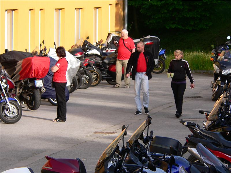 Po společné večeři nám Petr Poduška, autor všech naplánovaných výletů, mistrně představil trasu na následující den a seznámil se zajímavými místy vhodnými k zastávce či prohlídce. Každý dostal dárkovou tašku s reklamními předměty Honda, přehledem motocyklů na trhu, srazové tričko a podrobným itinerářem tras na všechny tři dny.