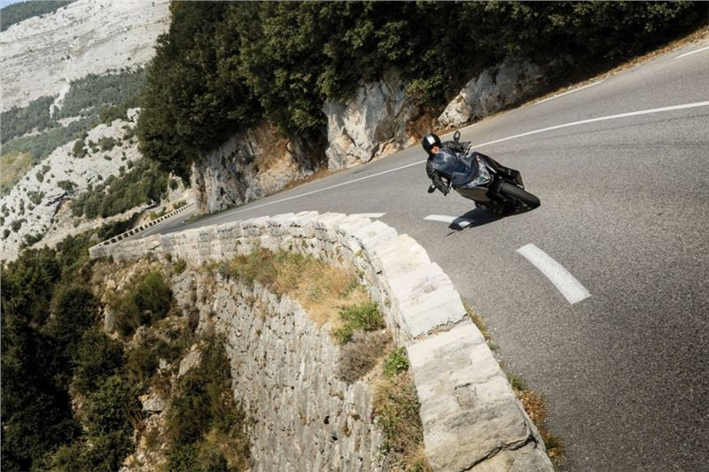 Přední vlnovitý kotouč o průměru 320 mm s dvoupístovým třmenem poskytuje dostatek snadno regulovatelné brzdné síly. Doplňuje jej 240mm vlnovitý kotouč s jednopístovým třmenem na zadním kole. Lehký dvoukanálový systém ABS zajišťuje rychlé a bezpečné zastavení i na kluzké nebo mokré vozovce. Páky přední a zadní brzdy s délkou stisku nastavitelnou v 6 stupních usnadňují přizpůsobení stroje velikosti rukou jeho majitele.