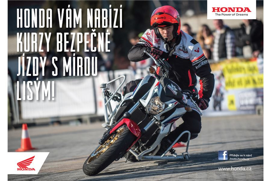 Honda vám nabízí tréninky bezpečné jízdy pod vedením jednoho z nejuznávanějších instruktorů české motocyklové scény, Mirka Lisého, a to nejen pro začínající jezdce, ale také pro ty, kteří chtějí zlepšit své jezdecké dovednosti v jedné stopě.