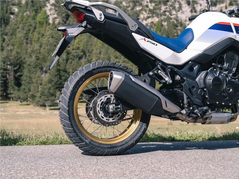 Kompaktní dvoupístové brzdové třmeny jsou spojeny s 310mm vlnovitými kotouči. Zadní 256mm vlnovitý kotouč je spojen s jednopístovým třmenem. Přední a zadní kola o průměru 21/18 palců s (nerezovým) drátěným výpletem jsou obuta do dušových pneumatik o rozměrech 90/90-21 a 150/70-18; Metzeler Karoo Street nebo Dunlop Mixtour.