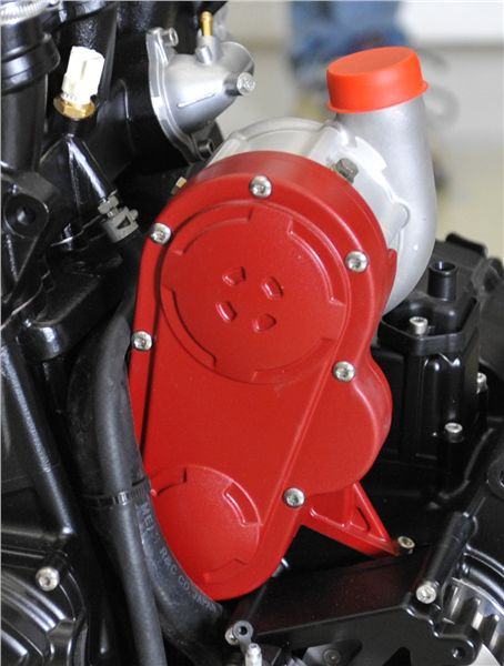 Aby superlativů nebylo málo, motor o obsahu 1200 ccm je vybaven radiálním turbodmychadlem s přímým náhonem, tedy bez "turbo-prodlevy" běžné u motorů s turbem poháněným výfukovými plyny. Hlava je z jednoho kusu pro všechny válce, každý válec má 3 ventily (2 sací a 1 výfukový) a celkem má motor 3 rovnoběžné vačky systému TOHC (Triple Overhead Camshaft). Jeho výkon však bude relativně "při zemi", a to cca 180-200 koní, ovšem s ohromným krouťákem, zátahem od velice nízkých otáček a neobvykle širokým pásmem použitelných otáček. To by mělo zaručit nejen vyjímečný požitek, ale i dlouhou životnost. Také zbytek motocyklu je plný převratných řešení, ačkoliv jako celek vypadá stroj (naštěstí) téměř klasicky.