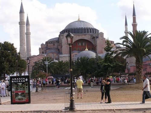 Vyrážíme na večerní prohlídku města. Měníme peníze a prohlížíme si Modrou mešitu sultána Ahmeda. Je to impozantní stavba, krásně nasvícená. Naproti této stavbě se rozprostírá další z několika chrámů Hagia Sofia, kterých je v tomto obrovském městě několik. Procházíme se bočními uličkami a nakonec se necháváme zlákat nabídkou z jedné venkovní restaurace. Kebab je výborný, ještě kávu a pomalu se vracíme do hotelu. Motorky jsou na svém místě a stařík u vchodu hlásí, že je bude celou noc hlídat. Máme za sebou 650 km, jsme příjemně utahaní, tak dobrou noc.