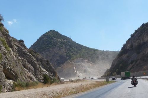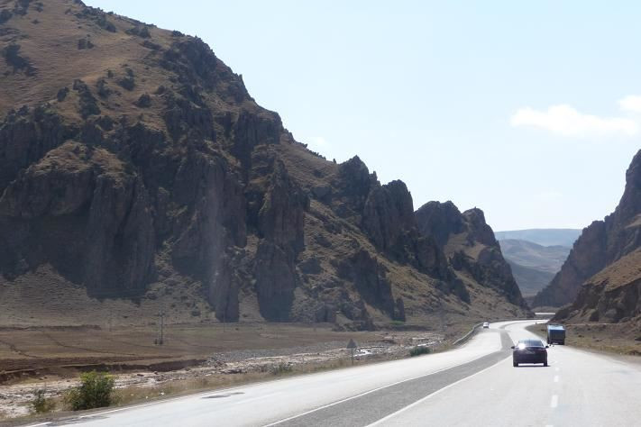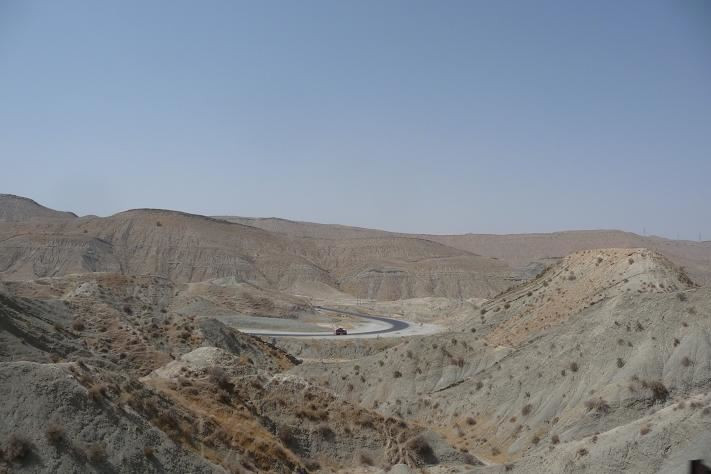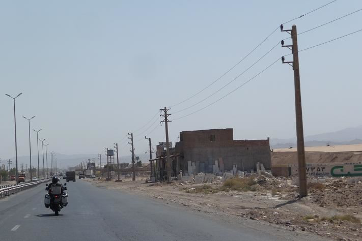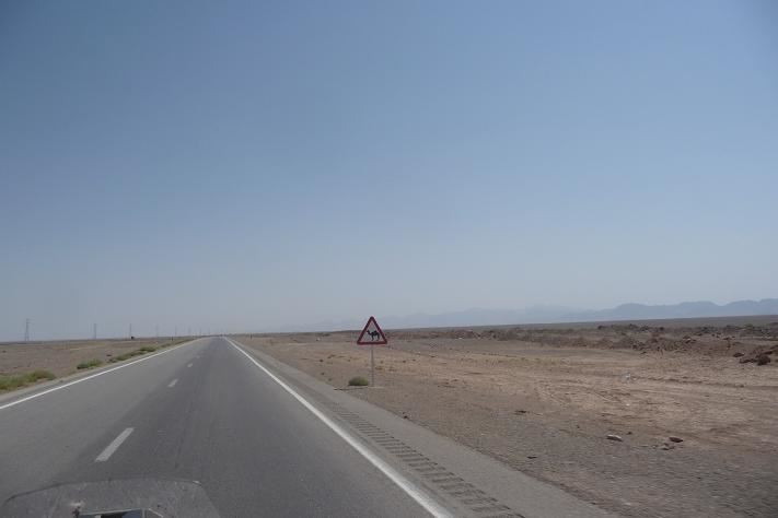 Silnice se moc neliší od dálnice, je stále dvouproudá, ale některé úseky jsou rozestavěné a provoz je sveden do jednoho směru. Na stavbách se hodně práší. Není divu, když v okolí jsou jenom skály a písek.