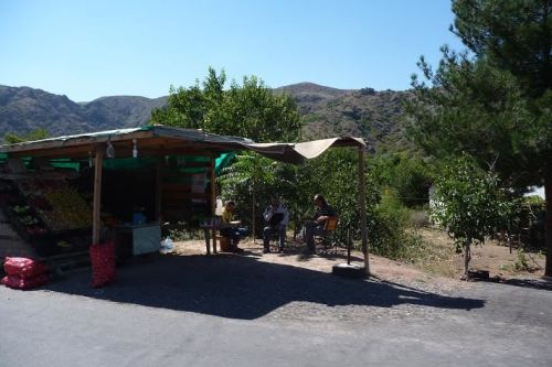 Pokračujeme stále po náhorní plošině, teplota opět stoupla na 29°C. Na parkovištích jsou stánky, kde prodávají brambory a cibuli. My ale uháníme dál, protože už je plno hodin a tma přijde rychle.