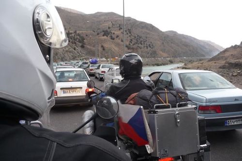 Najíždíme na výpadovku směrem na Teherán. Provoz je velký, hlavně stále předjíždíme obrovské náklaďáky, které jsou naloženy přes únosnou mez.