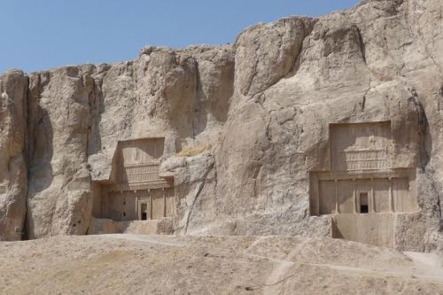 Silnice je široká a kroucená, udržujeme rychlost 110 km/hod. Barborka cvrliká a netáhne tak, jak normálně. Asi je to dáno výškou a i nekvalitním benzínem. Bohoušek je na tom stejně. V Takh-e Janshid stavíme u hrobek nejvyšších vládců Achajmenovské říše. Návštěvu ale necháváme na zítřek. To se sem vydáme nalehko. V motooblečení bychom na slunci přežili asi jen chvíli.