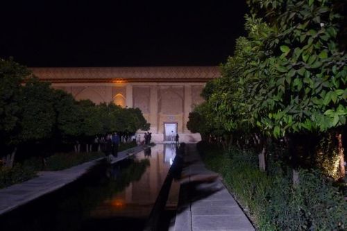 Taxíkem vyrážíme do známých zahrad Bágh-e Eram, což v překladu znamená Zahrada zemského ráje. Bohužel právě zavírají. Jdeme podle plotu a obdivujeme veliké cypřiše. Mezi zelenými trávníky jsou pískové cestičky a spousta laviček. Náhle je tma. Jdeme po hlavní třídě, kde proudí tisíce aut. V malém obchůdku koukáme, jak se stáčí med. Kupujeme si každý skleničku. Ještě jdeme na zmrzlinu. Je výborná, smetanová.