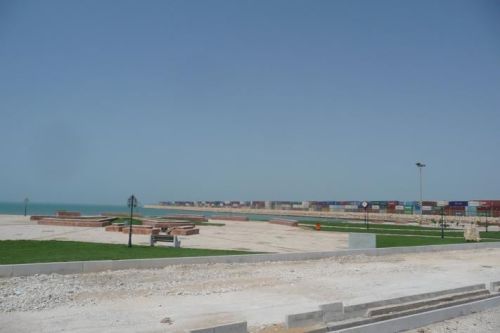 Jedeme se vyfotit na pobřeží, ale celá hlavní třída je uzavřena. Celou noc tu stavěli pódium a nacvičovali nějakou přehlídku. Nakonec přeci jenom nacházíme místo na focení. Nad mořem je opar, je 8 hodin ráno a 39 °C. Vzduch je jako v prádelně.
