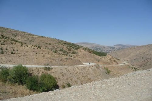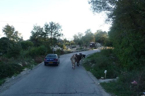 Chvíli jedeme po hlavní silnici na sever. V údolí pod námi je vesnice jak z hororového filmu. Polorozbořené kůlny, všude odpadky a mezi tím vším si hrají děti a posedávají dospělí. Většina žen chodí zahalena v černém hávu. Odbočujeme na šotolinovou cestu. Projíždíme několik vesnic, mezi nimiž jsou obrovské pastviny, kde se pasou koně, krávy a ovce.