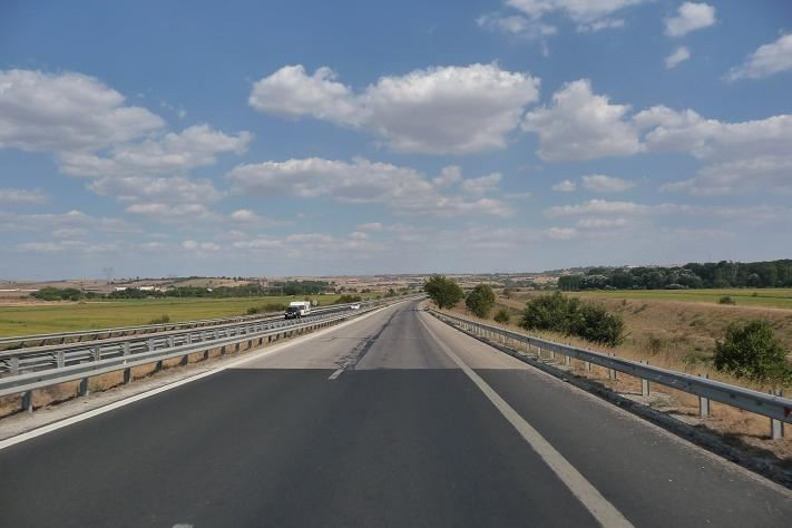 Po chvíli přijíždíme na dálniční mýtnici. Pán v okénku nám vysvětluje, že potřebujeme dálniční kartu, kterou si kupujeme a každý na ní máme 20 TRL. Okolí dálnice se nemění, stále ta rovina. Dodržujeme rychlost 110 km/h, ale okolo nás lítají ostatní auta minimálně 150. S blížícím se Istanbulem houstne i doprava.