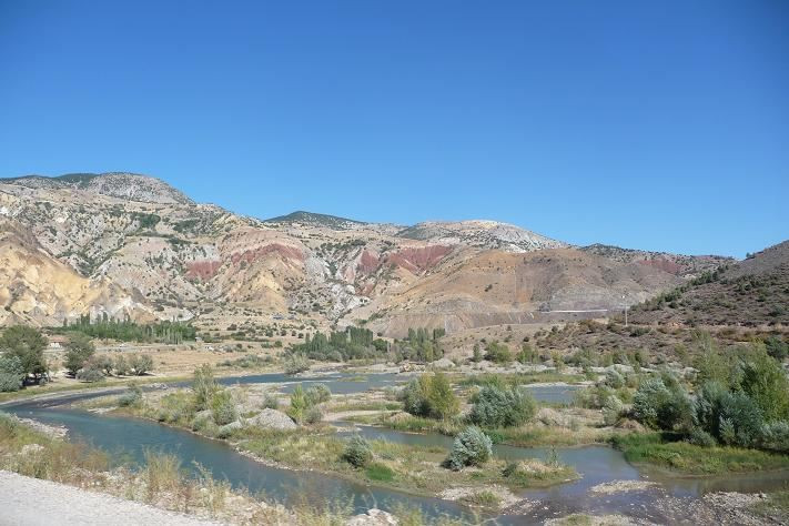Jedeme bez zastávky až k horám, kde sjíždíme k malé říčce. Ve stínu říční navigace snídáme. Pozorujeme stádo koz, jak šplhá po skále a za nimi šplhá i pasáček. Vůbec nechápu, co tady mohou jíst. Kamení?