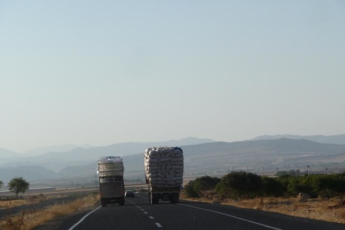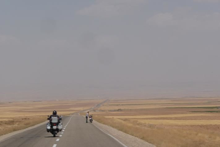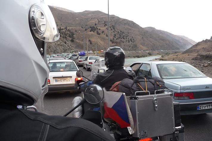 První dojmy jsou pozitivní. Silnice je velice kvalitní, ukazatele jsou psané latinkou a ve fársí. Zdá se mi, že náklaďáky strašně kouří. Všude je smog, až mě z toho bolí hlava. Ale to se poddá.