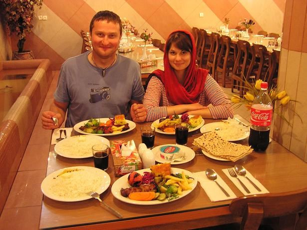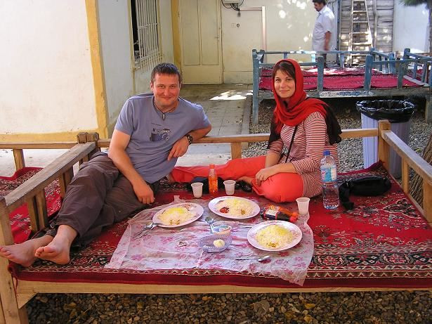 Na konci města stavíme u Perské restaurace. Objednáváme si rybu, jehněčí kotletky a rýži. Ochutnáváme malé papričky a jejda. Asi shořím! Od vedlejšího stolu k nám přichází nějaký pán. Vyptává se nás na obvyklé otázky, Nakonec s Romanem probírá naší cestu a doporučuje, co máme navštívit. Při odjezdu se fotíme s bezva rodinkou.