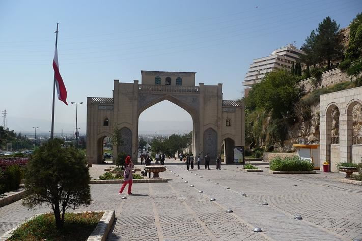 Vítá nás vstupní brána milionového města Shiraz. Všude se stavějí nové nádherné hotely. Projíždíme okolo vodotrysků a krásných parků. Jak to můžou v takových vedrech udržet tak nádherné?