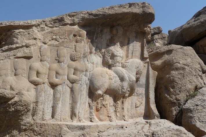 Po dvou hodinách se vracíme na parkoviště a náš pan řidič nás veze na další prohlídku. V areálu Naqš-eRadžab si za 5 Kč prohlížíme vytesané reliéfy v nadživotní velikosti. Ty zobrazují hrdinské čina králů Ardašíra I a Šáhpura Velikého.