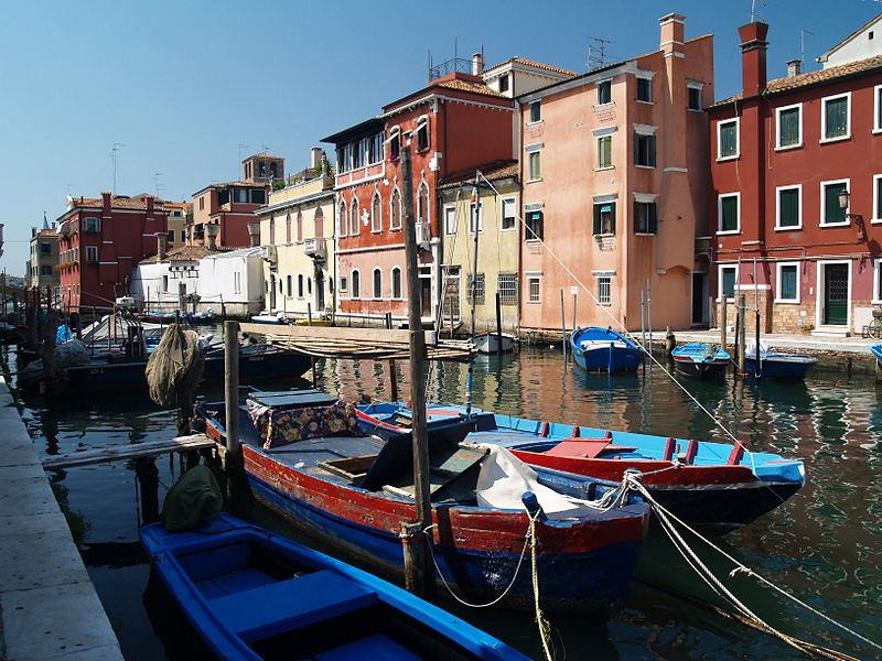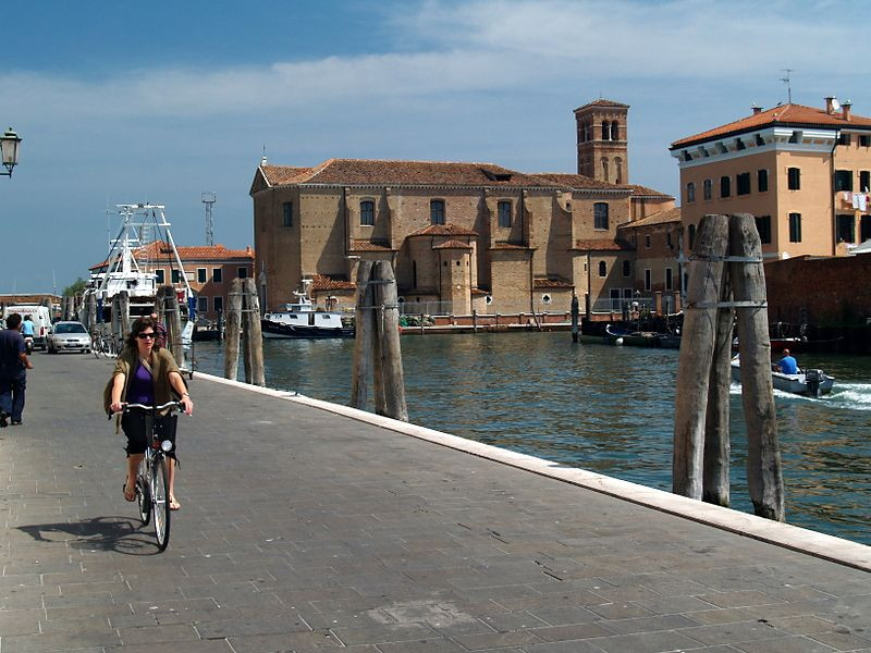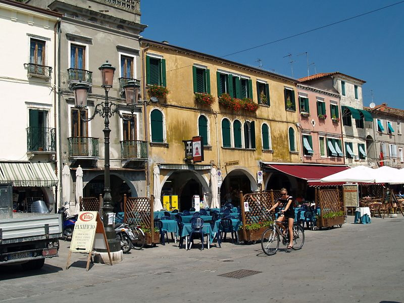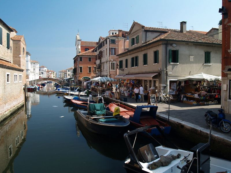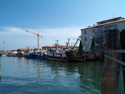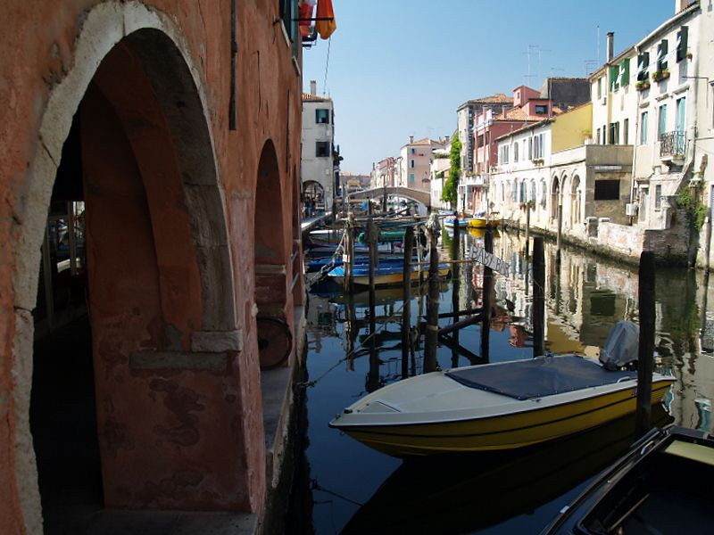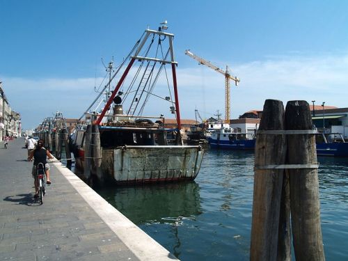 Už jsme skoro zvyklí vidět okolí naší noclehárny až po ránu. I osmého rána se poprvé rozhlížíme po osvětleném okolí přístavu, balíme improvizované tábořiště v luxusním kempu a vydáváme se prozkoumat předvoj Benátek, méně profláknuté město Chioggia. Architektura přístavu je italská klasika - zelenookenicový styl. Onehdá, když se všechny tyhle domy v oblasti Toskánska stavěly, musely být právě tyhle dělené zelené okenice šťavnatým byznysem. Podílem na trhu neměly konkurenci.