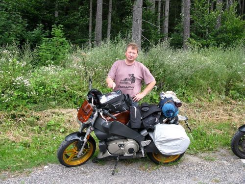 . Cestou zpátky už nás čeká jen jedno význěmnější passo, kde malinko přituhne, pročež pod bundu putuje Buell mikina. Rozhlížíme se po skalnatých vrcholcích, zdravíme pár zbloudilých motorkářů mířících vesměs na jih a vzpomínáme na italské sluníčko a třicítky. Hory zdoláváme bez většího konfliktu, projíždíme nečekaně prázdným Linzem a obědváme už na české straně zbořené barikády v neslavné restauraci. V nedělních zácpách to pak už valíme domů svižnou jízdou po tisíckrát projeté trase. Ve večerních hodinách parkujeme už každý ve své domácnosti, kde si obě naše mechanické milenky za celou akci vysloužily velkou pochvalu!