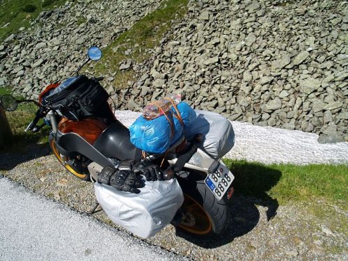 Plán říká, že na břeh Lago Di Garda je to z baráku 1001 kilometrů a že tam máme být dneska. Královskou snídani prokládanou dalšími pochybnostmi o smysluplnosti cíle opouštíme kolem osmé. Trasa vede údolím, kde dochází na opravu otáčejícího se zrcátka na Guzzině McGyver izolačkou TM, až k první horské silničce Erzkenzog Johenstrasse. Zažíváme vůbec první aplskou klasiku, serpentýny, krávy krácíčí přes cestu, sníh na vrcholu cesty a fascinující výhled do kraje.
