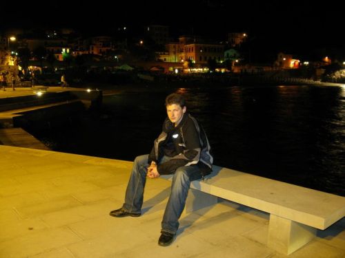 Noční Monterosso je nečekaně žijící kus světa. Motorka ukotvená u sloupu musí počkat opodál a já se poprvé, i když tochu nedobrovolně vinou větší vlny, máchám v mořské vodě. Pobřeží, molo, barevné loďky vytažené na pláži. Všechno přesně jako na fotce v knize Cesty snů po Evropě, kterou jsem prohlížel celý měsíc před odjezdem. Místo pro mě má najednou úžasnou atmosféru. Hraju si s foťákem, procházím uličkami a nemůžu se rozhodnout, zda rány kdesi opodál jsou zvukovým efektem ohňostroje nebo přicházející bouřka. Nervózně sedlám stroj na cestu zpátky. Serpentiny, mrak, jen já, stroj a Garmin. V 11:45 parkuji do garáže a zapisuji pár dojmů z celého dne za svitu baterky...