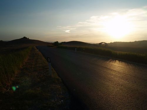 Italský dopravní poznatek: I mimo město je spousta dopravních značek. Svou značku tu má doslova téměř každá zatáčka nebo je aspoň napsáno, že zatáčky jsou dalších pět kilometrů. Před křižovatkou uprostřed pustin tak běžně potkáte plůtek značek upozorňujících na zatáčku, křižovatku, stopku za sto metrů, omezenou rychlost, směry k nejbližším cílům, ztrátu přednosti a přebíhající zvířátka.