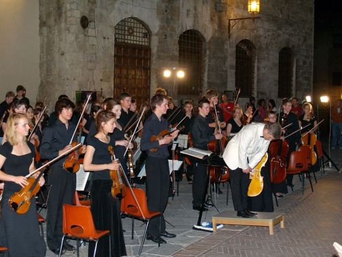 Koncert pokračoval, ale přece jen už bylo deset hodin a nemáme ještě kde spát. Vydali jsme se zpět před hradby pro stroje a zvažujeme myšlenku vyspat se kdekoli v okolní krajině. Poté zvítězila myšlenka pokusu o penzion, což se po dvojím objetí okolí města setkalo s úspěchem. Otevřením dveří přímo do obýváku jsem vyrušil večeřící rodinku. V zápětí se všichni vyhrnuli ven a slova se ujala starší paní. Italsky mi sdělila obvyklé completo, ale ochotně vyprávěla cosi dál. Naštěstí se slova ujal jediný anglicky mluvící obyvatel domu a povídá, že mají sice obsazeno, ale doporučí nám někoho jiného. I zavedla mě paní domu kamsi za dům, zaklepala na okno a nechala mě na pospas vykouknuvší sousedce, z jejichž vět jsem ve finále pochopil cinque minute a počkal tedy, než se objevila před domem.