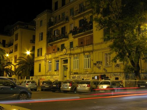 Za neustálého povídání jsme přešli k motorkám a anglicky mluvící obyvatel nám vylíčil, že jí máme sledovat. Vzápětí se z poza zdi vyřítila v otlučeném Fiátku Seicento, dovedla nás k hradbám, zotvírala všechny tři dveře do svého minivozidla a pochopili jsme, že máme naložit bágly. Motorky tedy zůstaly přivázené k betonové lavičce a Fiátek narvaný po střechu vyrazil do středověkého centra. Chvíli jsme polemizovali, kde nás hodlá místní podsvětí zabít a jak odřežou přikurtované motorky. Pilotující bába se ale tvářila vesele, rozhazovala rukama a vyprávěla, ač jsme ze všeho pochopili jenom macchina piccolo a její přezdívku mamá Šumáker. Svoje minivozidlo vedla po dlažbě v úzkých uličkách opravdu neobvykle rychle a celkem rádi jsme po závěrečném zpátečkovém manévru vystoupili před svým dočasným domovem. Uvnitř středověkého domu nás čekal dvoupokojový byt s kuchyňskou linkou a novou koupelnou. Za 50 E úžasná záležitost.