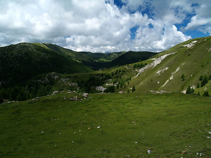 Dalším údolím směřujeme na Karnische Dolomiten Strasse, silničku tak šíleně klikatou, nalepenou většinou někde uprostřed meze, mosty překračující průrvy a sem tam se špatným povrchem, až z toho bolí ruce. Den se krátí a zatím to nevypadá ani trochu, že bychom do rozumné doby jezera dosáhli. Neubírá nám to na skvělé náladě z nádherného prosluněného kraje a vidinou celého týdne zde stráveného. Itálie je před námi, tak směle...