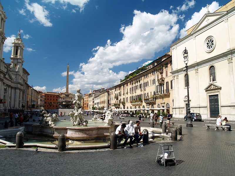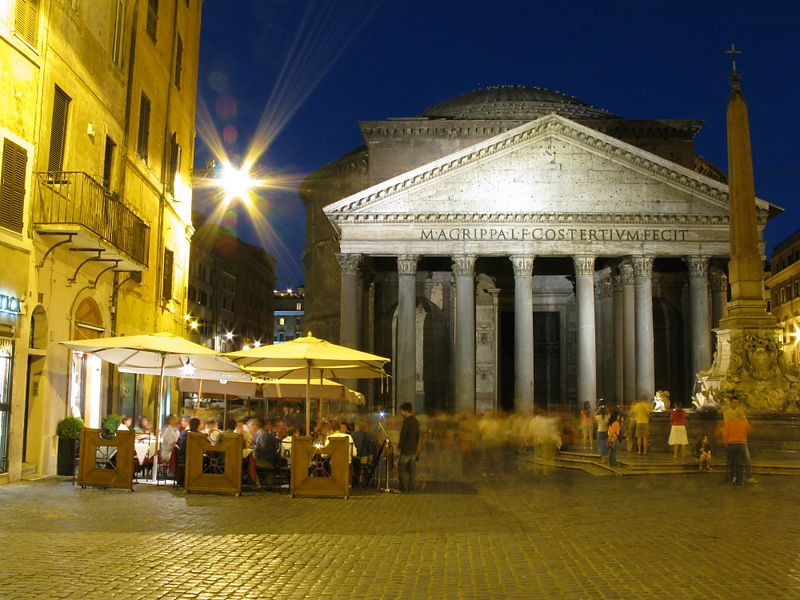 Tomáš se vrací na pobřeží, koupat se a kdo ví co. Pokračuji sám uličkami Říma směrem k Pantheonu. Město má určité kouzlo, zejména kouzlo zmást návštěvníky, navíc když v uličkách mezi vysokými domy není možné chytit signál GPS. Pantheon je daleko větší, než v mé představě. Uvnitř je nádherný chládek. Všichni příchozí fotí devítimetrovou díru ve střeše, což byl asi jeden z vůbec nejlevnějších architektonických majstrštyků. Málokterá díra ve střeše bude na tolika špatných fotkách z levných placatých foťáčků, zmatených snahou porozumět kontrastům scény. Mám v plánu vypravit se sem pro fotku po setmění, takže pokračuji městem k řece, Andělskému mostu a hradu i prostranství obléhanému sloupořadím - Vatikánu. Jakkoli se mi líbí architektura této části města, dovnitř mě to do památek nikam neláká. Spíš se sem tam jenom zastavím a pozoruji život kolem.