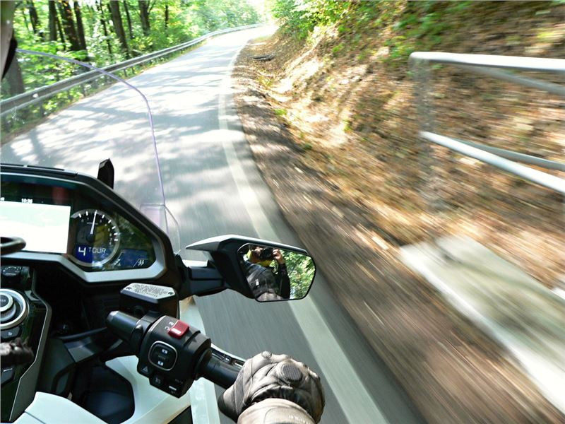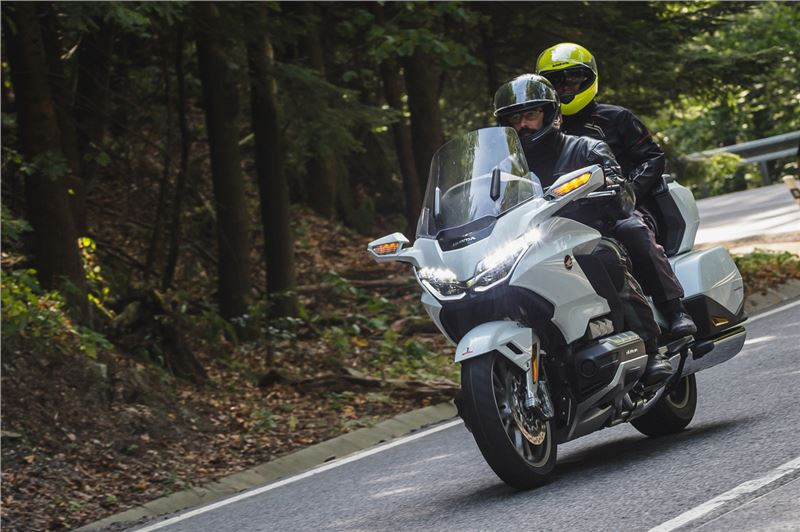 Na opačném konci stojí legendární vlajková loď Gold Wing 1800. Ke zkušební jízdě lákala jak verze s manuální převodovkou, tak s DCT automatem. Celou druhou etapu jsme společně s manželkou absolvovali právě na modelu s manuálem.