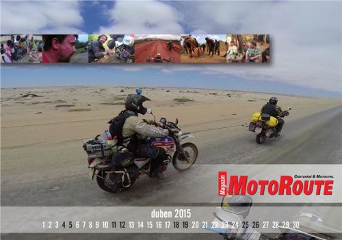 Nedávno vyšel nový barevný nástěnný kalendář pro rok 2015 na téma druhé etapy expedice "Around Africa", tedy cesty Martina Pouby a jeho kamarádů kolem Afriky, části z Kamerunu do JAR (viz cestopisy v MotoRoute č. 4 a 5/2014).