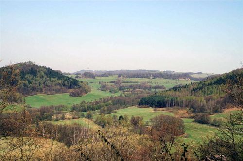 Prudké stoupání lesem po červené, všici funíme, já nejvíc, a ještě se k tomu značně rosímL. Humus, humus, metry přibývají, hradu nět. Z GPSky odečtu, že už máme za sebou skoro kilák, takže je asi něco špatně. Jindra by furt šel dál, mě se to ale jeví jako kontraproduktivní, takže po delší vzrušené diskuzi dáme návrat. O kousek níž si Jana všimne značené odbočky, pročež když už jsme zde, tak ji zkusíme. Zavede nás na skalní ostroh, kde při dobré vůli by mohl být někdy skalní hrad. Ale teď po něm nezbejvá nic….. Alespoň je zde hezkej rozhled, s tímhle pocitem se vracíme zpět ke strojům. Už je pomalu čas razit do Lípy.