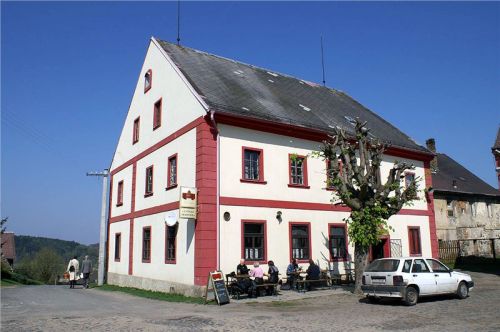 Protože se již poledne nachyluje (a vstávali jsme sakra brzo), jednomyslně je rozhodnuto vylepšit si náladu a utišit hlad v místní hospůdce. Sympatické zařízení nabízí i posez venku, tudíž se pro něj rozhodneme. Nabídka je dostačující: já nemaje až tak hlad si dám držkovou (nedostanu ji pro tentokráte od paní doktorky