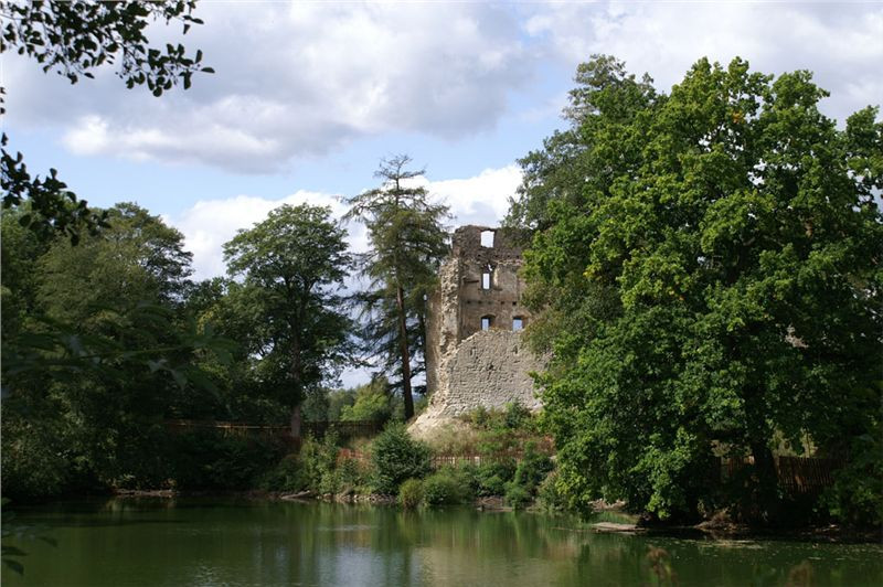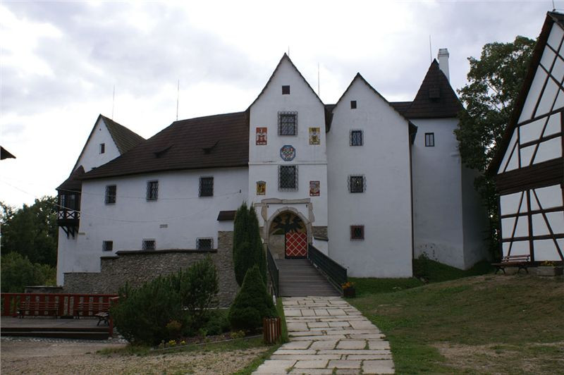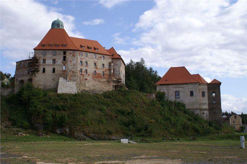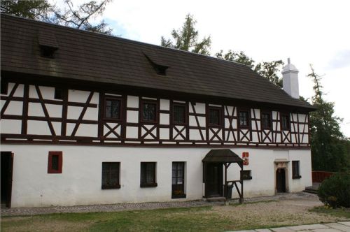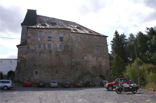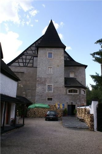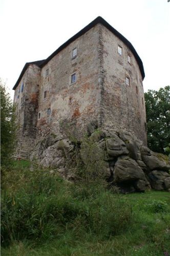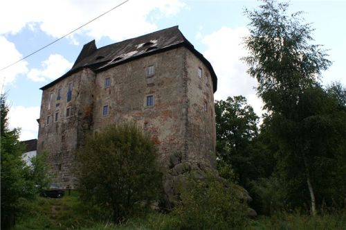Původní hrad vybudovali okolu roku 1200 chebští ministeriálové. Koncem 18 století byl areál doplněn rokokovou zámeckou budovou. V přízemí se nachází stylová restaurace, v podzemí vinárna a muzeum zbraní, na části nádvoří je umístěna malá ZOO. Zhlédli jsme hasičské muzeum v prvním patře zámku a místní ZOO, kde nám přišlo některých zvířat líto (dva orli v mrňavé voliéře a divoké prase v úzké ohrádce), milovníci zvířat by zrovna neplesali. Muzeum zbraní umístěné v podzemí si necháme na jindy, restaurace a vinárna je pro německy mluvící klientelu. Ještě obcházíme celý areál zvenčí a pořizujeme nezbytnou fotodokumentaci a pak se již přesunujeme do cca 1 km vzdáleného dalšího historického objektu, který se jmenuje zámek Starý Rybník.