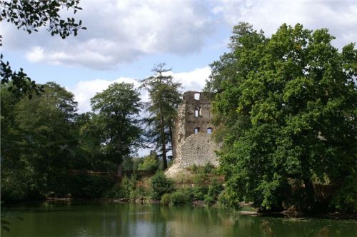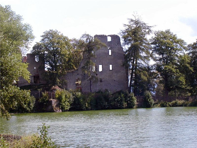 Tento bývalý zámek má příhodné jméno, jeho zdi se odráží v hladině rybníka, nicméně se nachází v dosti zuboženém stavu. Celý areál tvoří ještě zřícenina původního hradu a přilehlý hospodářský dvůr, k jehož revitalizaci postupně dochází. Museli jsme se spokojit jen pohledem zvenčí, areál byl uzavřený a soudě dle stupně zchátralosti, ještě dlouho uzavřený bude. No vzhledem k hustotě památek na našem území, nelze vše zajistit ke spokojenosti nás poutníků dychtivých zvědět a zhlédnout vždy něco zajímavého a inspirujícího. Unaveni zážitky přeci jen začínáme pociťovat jemné kručení v útrobách hlásících nám, že žaludek se nedá ošidit - však je také po 14 hodině. Vzhledem k tomu, že jsme chtěli navštívit pramen minerální vody v lokalitě Dolní Paseky nabízí se, že by to bylo místečko přímo ideální k menšímu spočinutí a spořádání nějakých zásob.