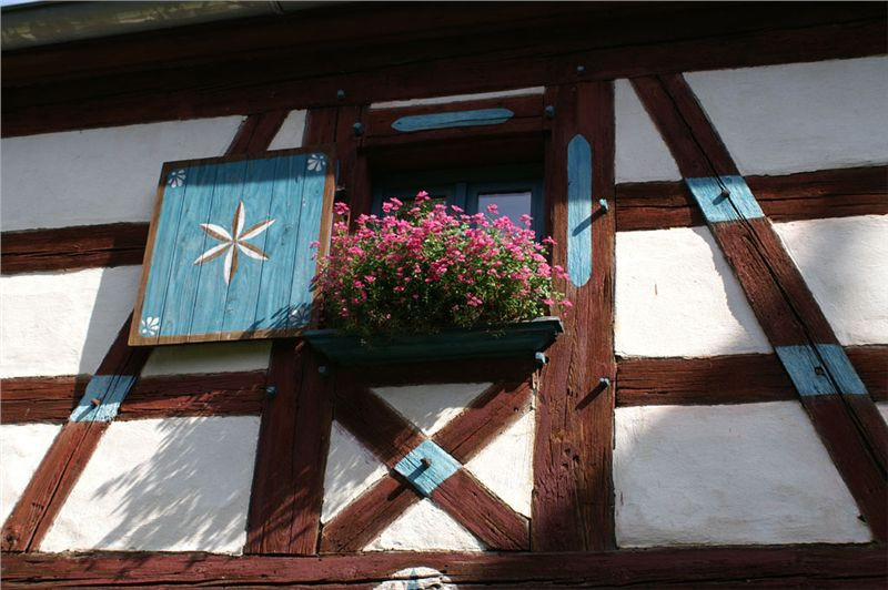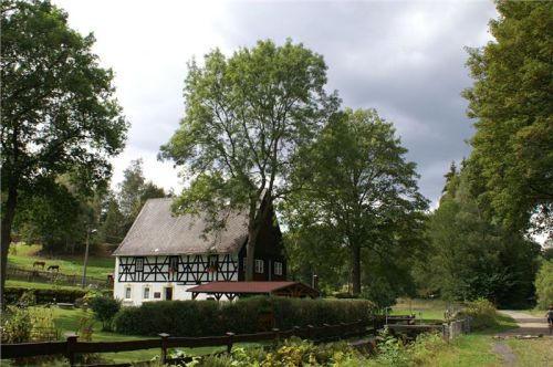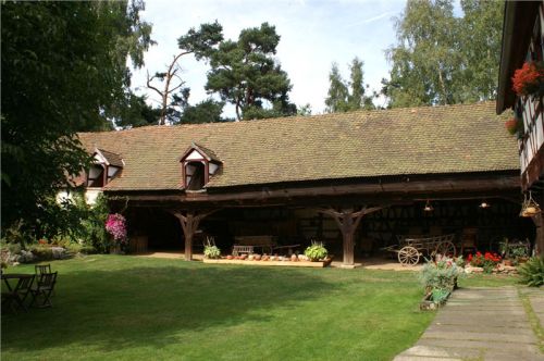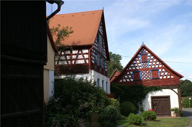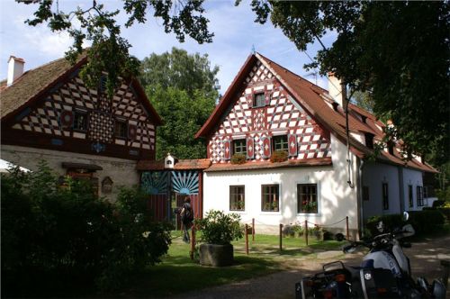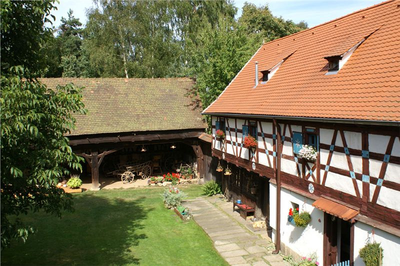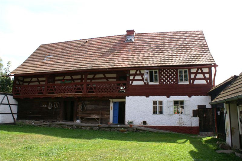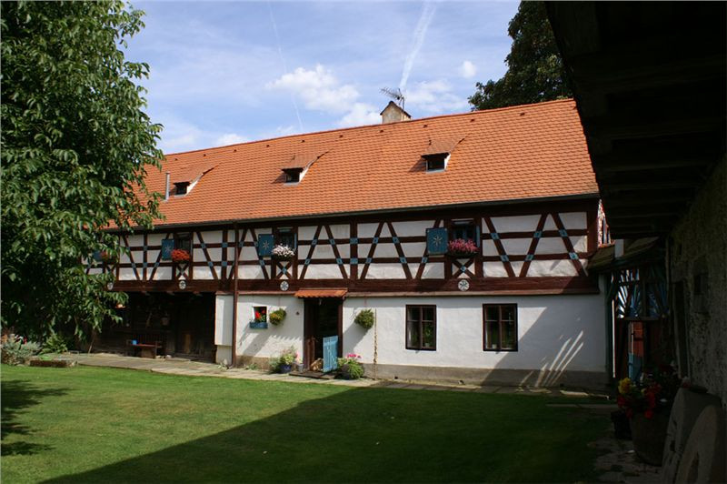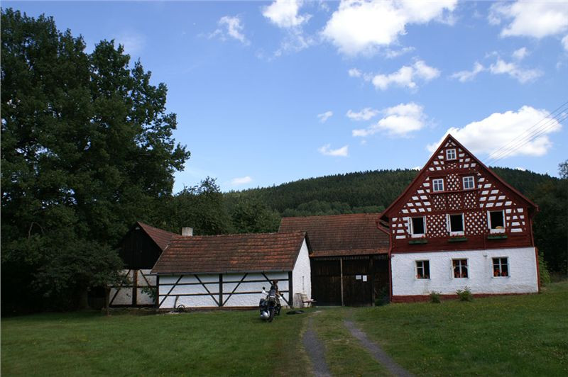 Jedná se o kompletně dochovaný typicky hrázděný statek, pocházející z roku 1751. Při vstupu do čtyřstranného uzavřeného dvorce jsme se ocitli se opět v jiném světě. Statek je citlivě zrekonstruován, vlastní objekt slouží dosud k bydlení a jiným aktivitám vlastníka, přístupny jsou hospodářské budovy a dvorek. Na dvorku pod rozložitým kaštanem byly volně rozprostřeny židle, potuluje se zde řada domácích zvířat. Zvláště kočky tvoří různá malebná zátiší v keramice (máme nafoceno), pes jen zlenivěle střeží v zmrtvělé poloze vstup do vlastního objektu, předvedl že umí i chabě štěkat. Prohlídka je volná bez průvodce, a tak si beze spěchu prohlížíme expozici a vychutnáváme atmosféru místa.