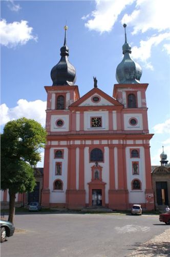 Zhlédli jsme poměrně zachovalý farní a poutní kostel Nanebevzetí Panny Marie, i když v současnosti ještě v opravách. A pak už jsme supali do kopce Drsný vrch, natěšení na výhled z rozhledny umístěné na vrcholu. Naše nadšení však bylo záhy zchlazeno. Cihlová rozhledna z roku 1903 vypínající se ve