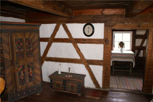 A opravdu bylo co obdivovat. Hrázděný statek odkoupilo chebské muzeum od soukromníka v roce 2007. Je otevřen teprve od 1.5.2009 po provedení nejnutnějších rekonstrukčních prací. Je zde umístěno ne úplně stylové zařízení zahrnující časový horizont od 2 pol. 19 století po současnost. Původními majitelé byli Němci, po jejich vysídlení, byl statek obýván až do roku 2007. Provázela nás příjemná paní průvodkyně, dýchla na nás domácká atmosféra a klid a pohoda tohoto místa.